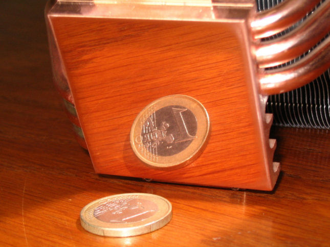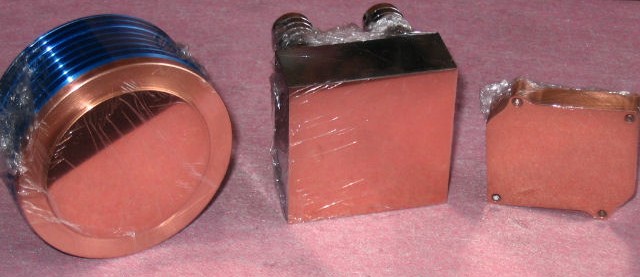 Pour qu´un composant se libère de son surplus de chaleur il faut le coupler à un système lui permettant de dissiper cet excédant. C´est le but des radiateurs, associés ou non à un ventilateur, et de tout autre bloc percé et traversé par un fluide (WaterCooling, VapoChill, HeatPipes etc.). Ces dispositifs sont fabriqués dans des métaux conduisant plus ou moins bien la chaleur. Les plus rencontrés sont le cuivre, connu depuis bien longtemps pour sa grande conductivité thermique (401 W.m-1.K-1), et l´aluminium (237 W.m-1.K-1). Le matériau le plus performant souffre par contre d´une densité nettement plus élevée avec 6.8 contre 2.7 pour l´aluminium. Ces deux métaux s´oxydent et donc ternissent au contact de l´air : l´aluminium se couvre rapidement d´une couche résistante et transparente d´oxyde d´aluminium (ou alumine) qui le protège de la corrosion et conserve donc sa couleur gris métallique d´origine. Sans un traitement spécifique, le cuivre se recouvre d´une couche d´oxyde de cuivre verdâtre (vert de gris) altérant considérablement son aspect. Dans les deux cas, les oxydes introduisent une résistance thermique conséquente : pour l´alumine on chute à 0.406 W.m-1.K-1 !