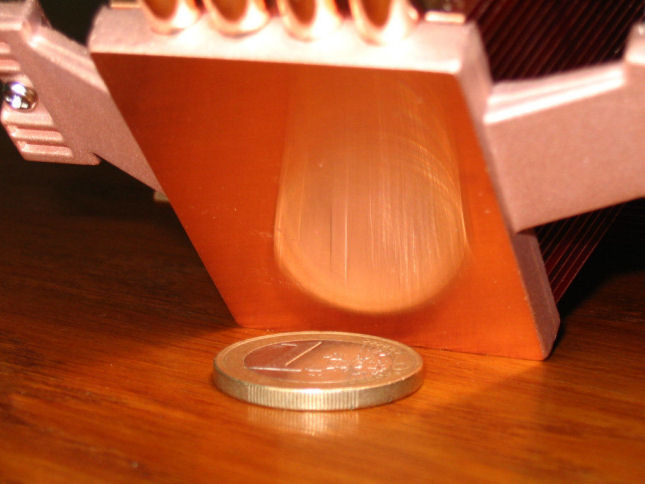On constatera aussi que les plus grands noms du refroidissement ont tendance à fournir une surface de meilleure qualité sur leurs dissipateurs que leurs concurrents, mais on est encore loin d´un polissage poussé comme présenté ici.